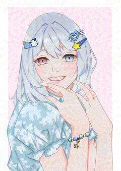 she has pale blue short hair and heterochromia eyes with the blue on the left and pink on the right. she's good at fighting because ran and rindou teach her♡— spicy food, cute things, sky
